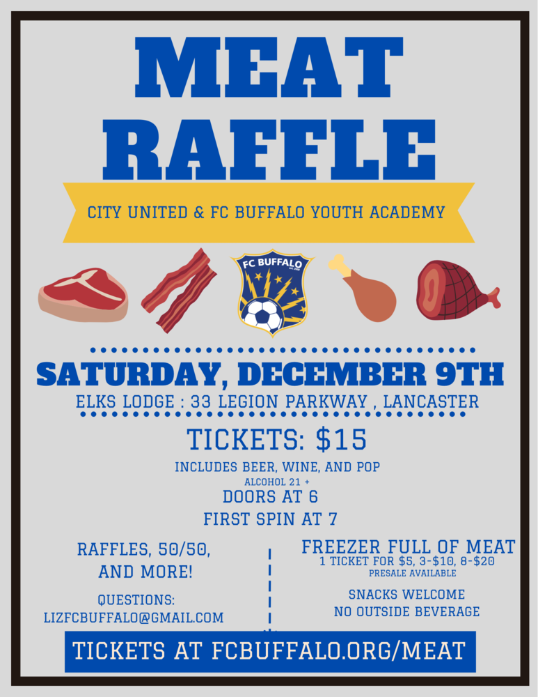 FC Buffalo is proud to support its new youth academy as well as the youth initiatives of City United by promoting a meat raffle in Lancaster, NY on Saturday, December 9.