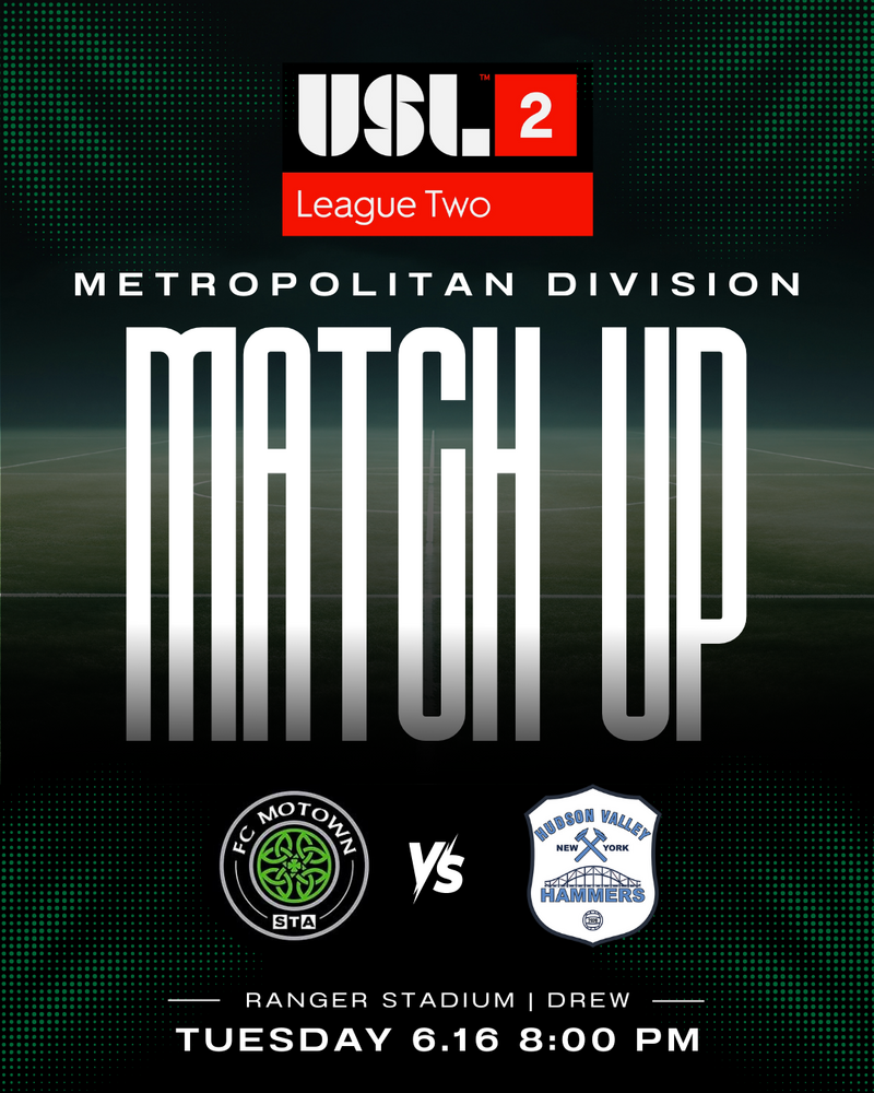 Come join us for an exciting night of soccer as FC Motown STA takes on Hudson Valley Hammers at Ranger Stadium (Drew University) on 6/16/26 at 8:00 PM