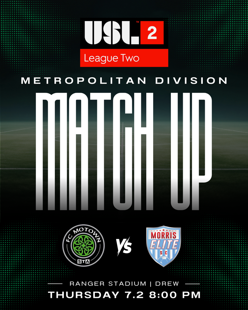 Come join us for an exciting night of soccer as FC Motown STA takes on Morris Elite at Ranger Stadium (Drew University) on 7/2/26 at 8:00 PM